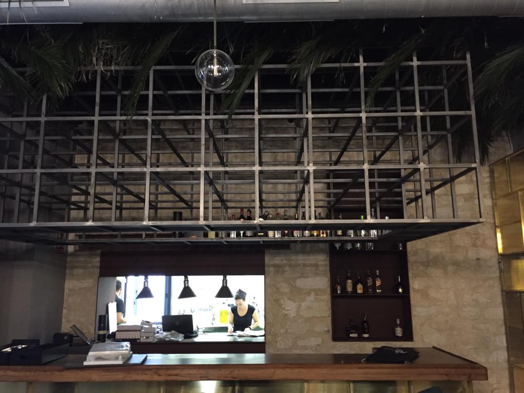 Estructura decorativa para botellas y copas: medidas 3800 ancho, profundidad de 1700, altura de 1550.
